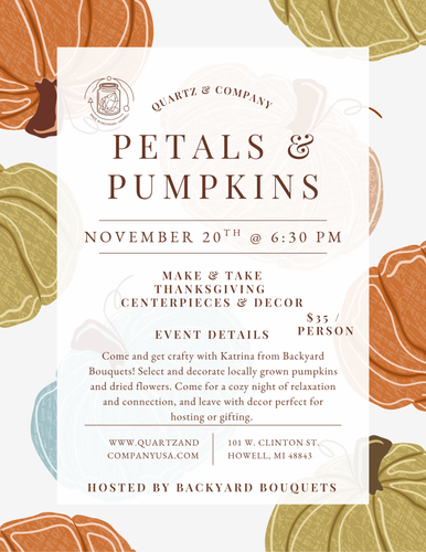 Petals & Pumpkins Thanksgiving Centerpiece Workshop: November 20th @ 7
